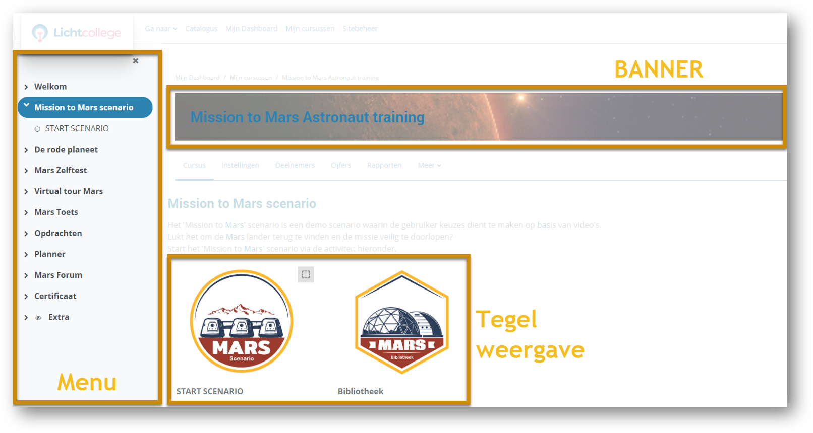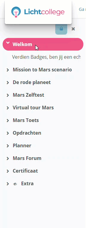 Gebruikers kunnen met slechts één klik verschillende menuweergaven kiezen, wat de navigatie binnen de cursus vergemakkelijkt.
