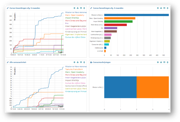 Met OpenEdu's revolutionaire 'Inzicht'-tool binnen Moodle Premium, opent u een wereld van geavanceerde, cursusoverstijgende analyses en rapportages. Dit innovatieve dashboard biedt docenten en beheerders een ongeëvenaarde blik op de dynamiek en prestaties van uw leeromgeving.